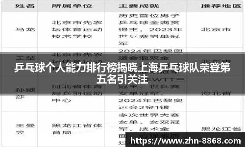 乒乓球个人能力排行榜揭晓上海乒乓球队荣登第五名引关注